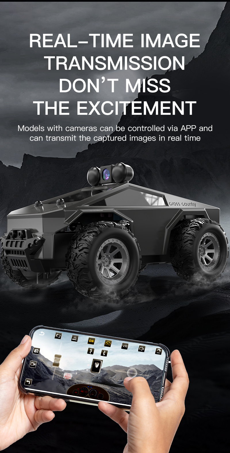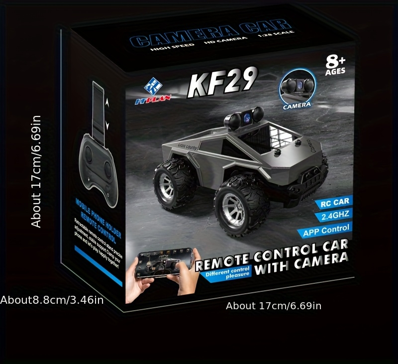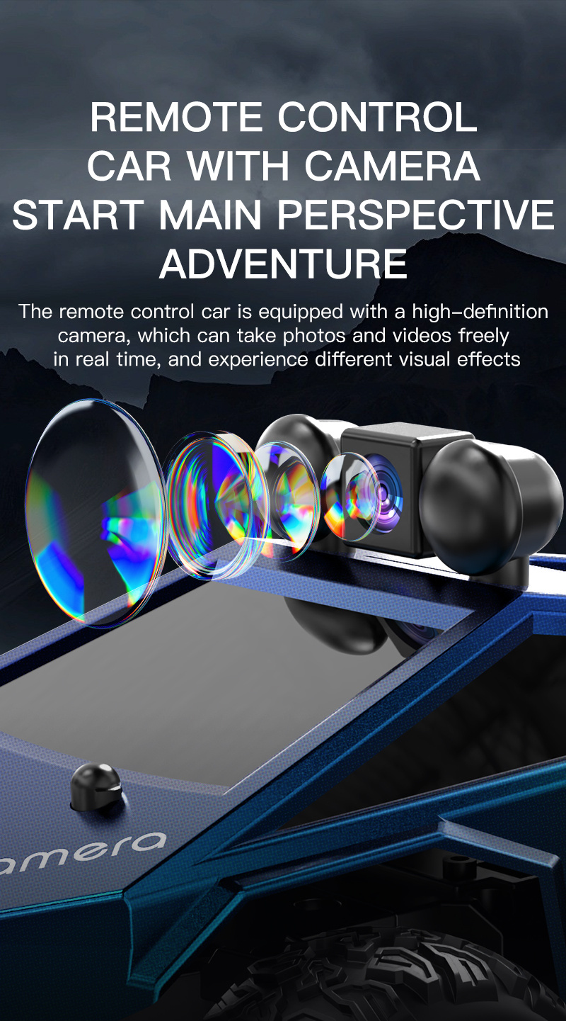 1/28 Scale FPV RC Truck with Camera & Live Video, 2.4GHz Remote Control Car with FPV Goggles-like View, Alloy-Body Style (Plastic), Anti-Interference System, 2-Speed Modes & Flashing Lights - Controlled for Boys & Adults (Gif