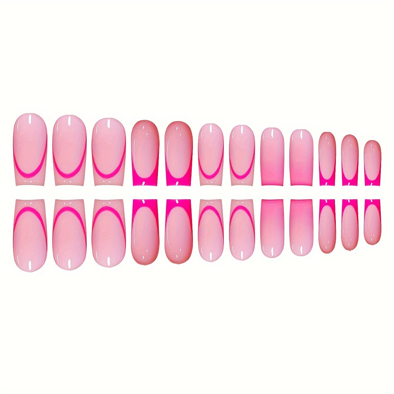 24pcs Pink Square Medium Length Press-On Nails with Glossy French Gradient Design, Fashionable Sweet Simple Style, Removable for All Women and Girls, Includes 1 Gel and 1 Nail File