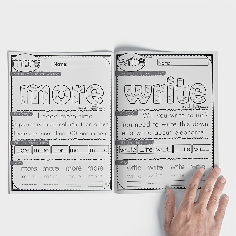 50-Page High-Frequency Kindergarten Sight Words Workbook - Phonics & Spelling Practice, Paper Material, Homeschool & Classroom Handwriting Aids