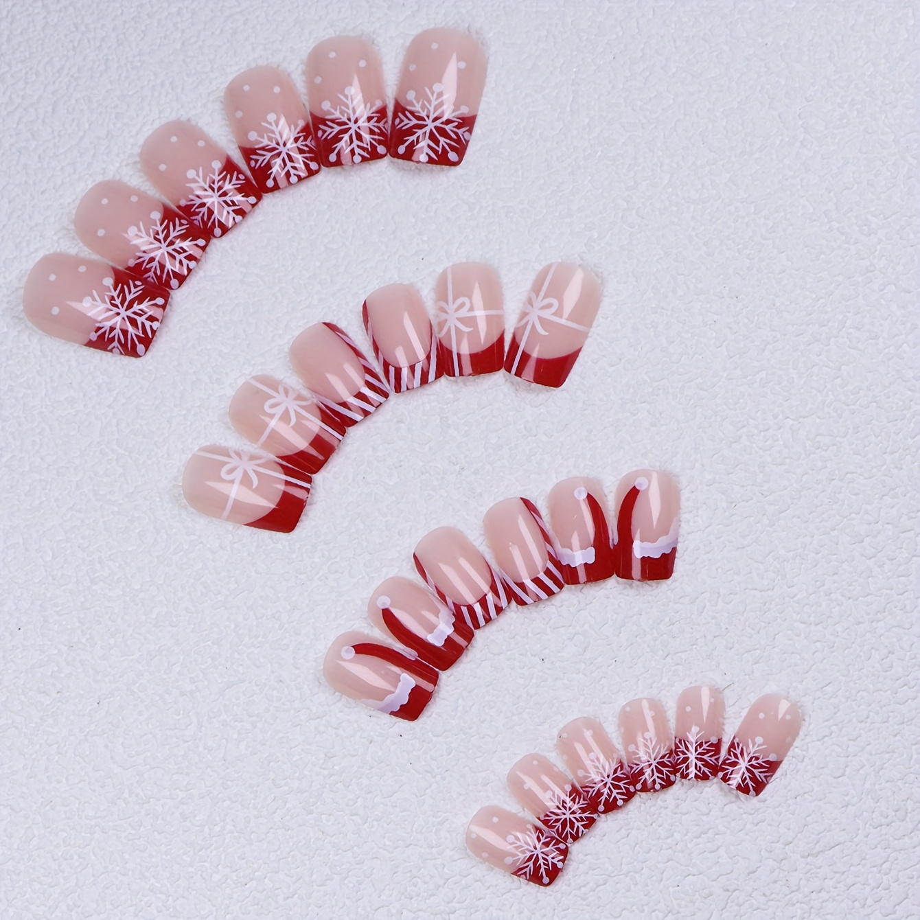 [Christmas | 24pcs Nail Set] 24pcs Christmas Nail Set - French Red Santa Hat, White Bow & Snowflake Design, Glossy Acrylic Nails for Women, Holiday Parties & Daily Wear, Festive Nail Art Gift, Elegant Nail Style, Durable Nail