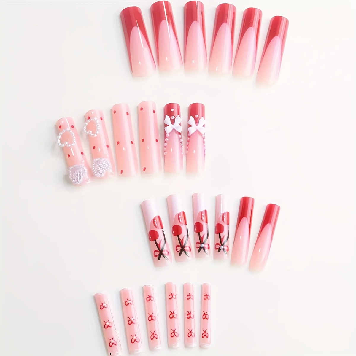 Cross border European and American style, sweet and cool, spicy style, wearing armor, heart-shaped bow, cherry painting, French nail art patch nail