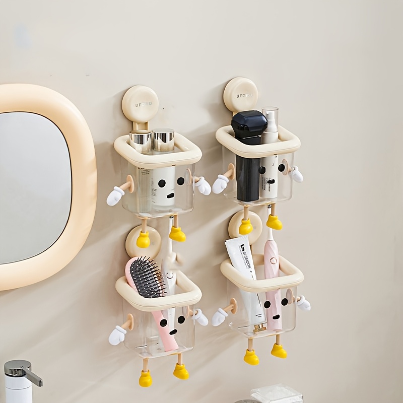 DIY Creative Cute Toothbrush Holder, Wall-Mounted No-Drill Suction Cup for Home Use, Bathroom Toothpaste Toothbrush Electric Toothbrush Cosmetic Organizer, Razor Makeup Brush Hanging Storage, High-End Multifunctional Transpar
