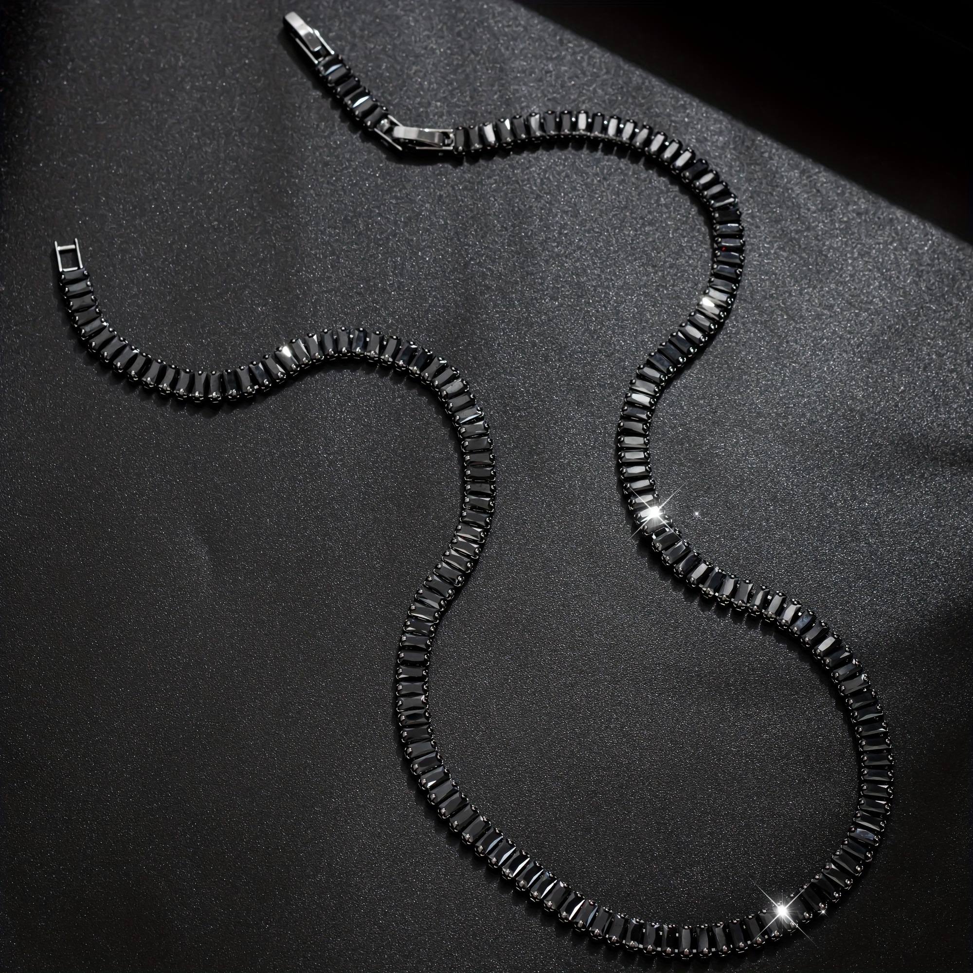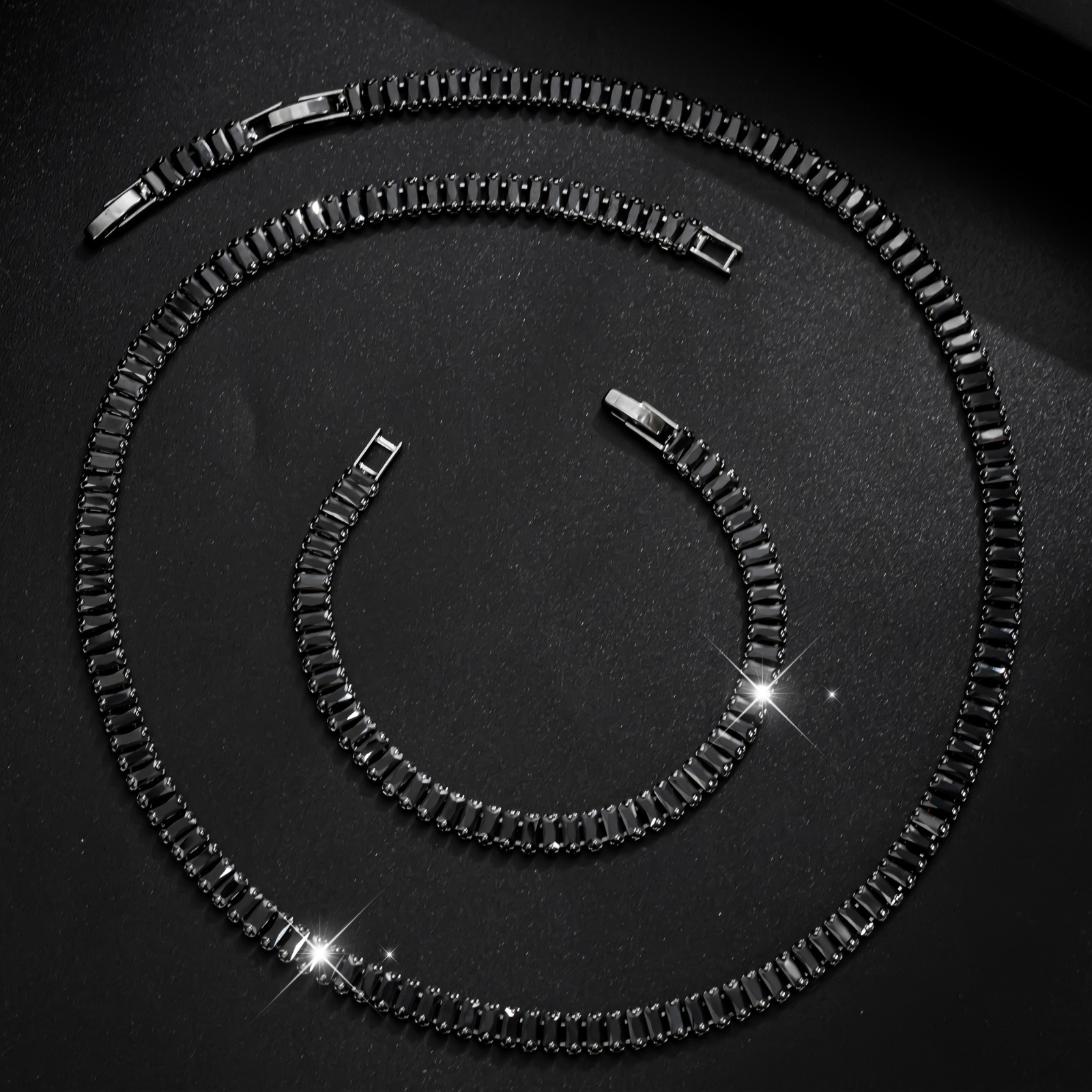 Men's Black Zircon Tennis Bracelet & Necklace Set |
