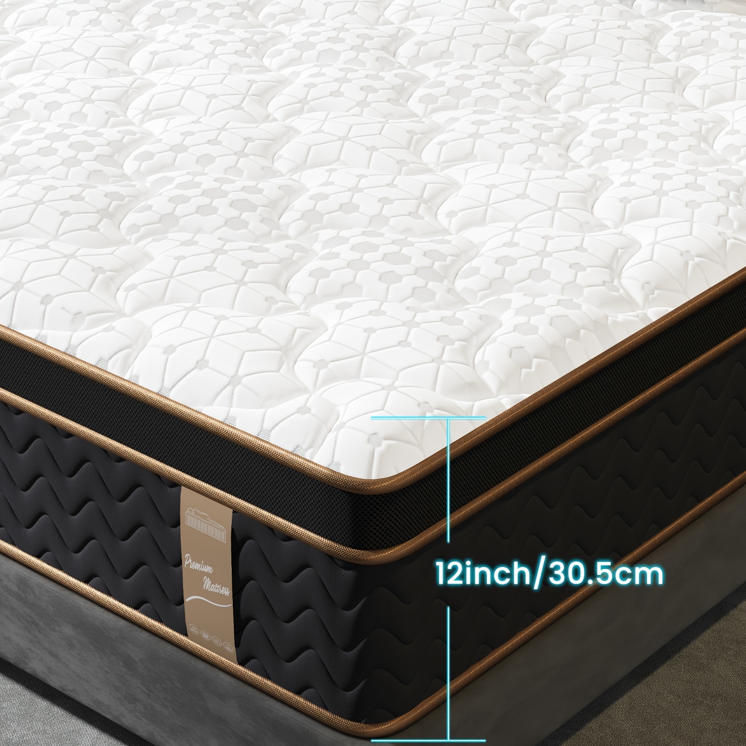 Full Quen King Mattress, 12 Inch Hybrid Mattress with Gel Memory Foam, Fiberglass-Free Medium Firm Deluxe Mattress In A Box, Individual Pocket Spring-Motion Isolation-Edge Support, 100 Nights Trial