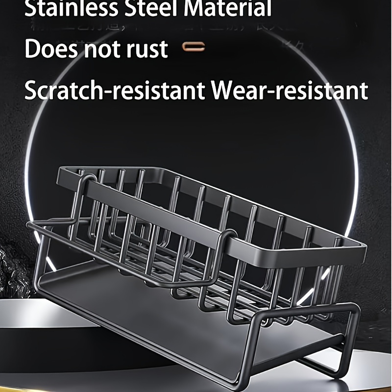 Heavy-Duty Metal Kitchen Sink Organizer Tray - Sink Drainage Rack with Built-in Sponge Holder, Dish Brush Slot - Space-Saving Countertop Organizer, Compatible with Standard Sinks - Easy to Clean Kitchen Storage Rack, Compact