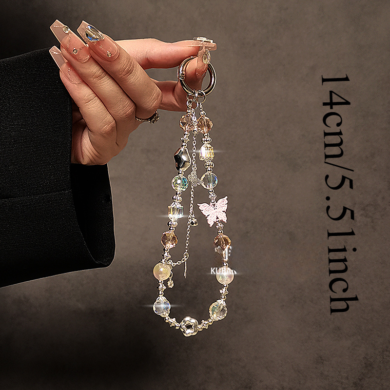 [Luxury Wristlet] Versatile Luxury Pink Butterfly Beaded Wristlet | Phone Case, Car Keychain & Bag Charm Accessory, Aesthetic
