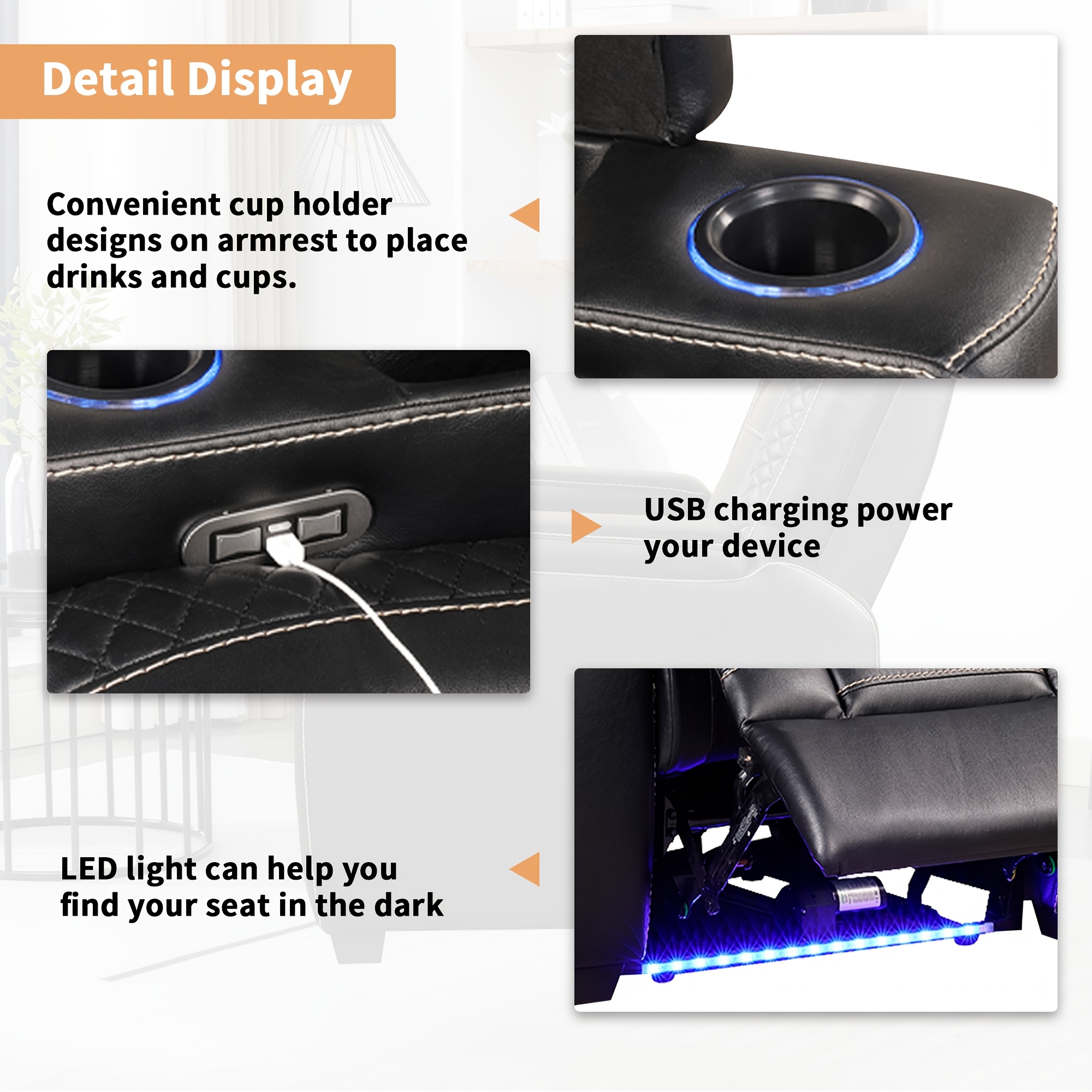 Men's Luxury Electric Recliner Chair, Heavy-Duty Metal Frame, Plush Leather-like Upholstery, Dual-Motor Lift & Recline, USB Ports & Cup Holders, Hidden Storage Armrests, Headrest Adjustment, for Home Theater Seating