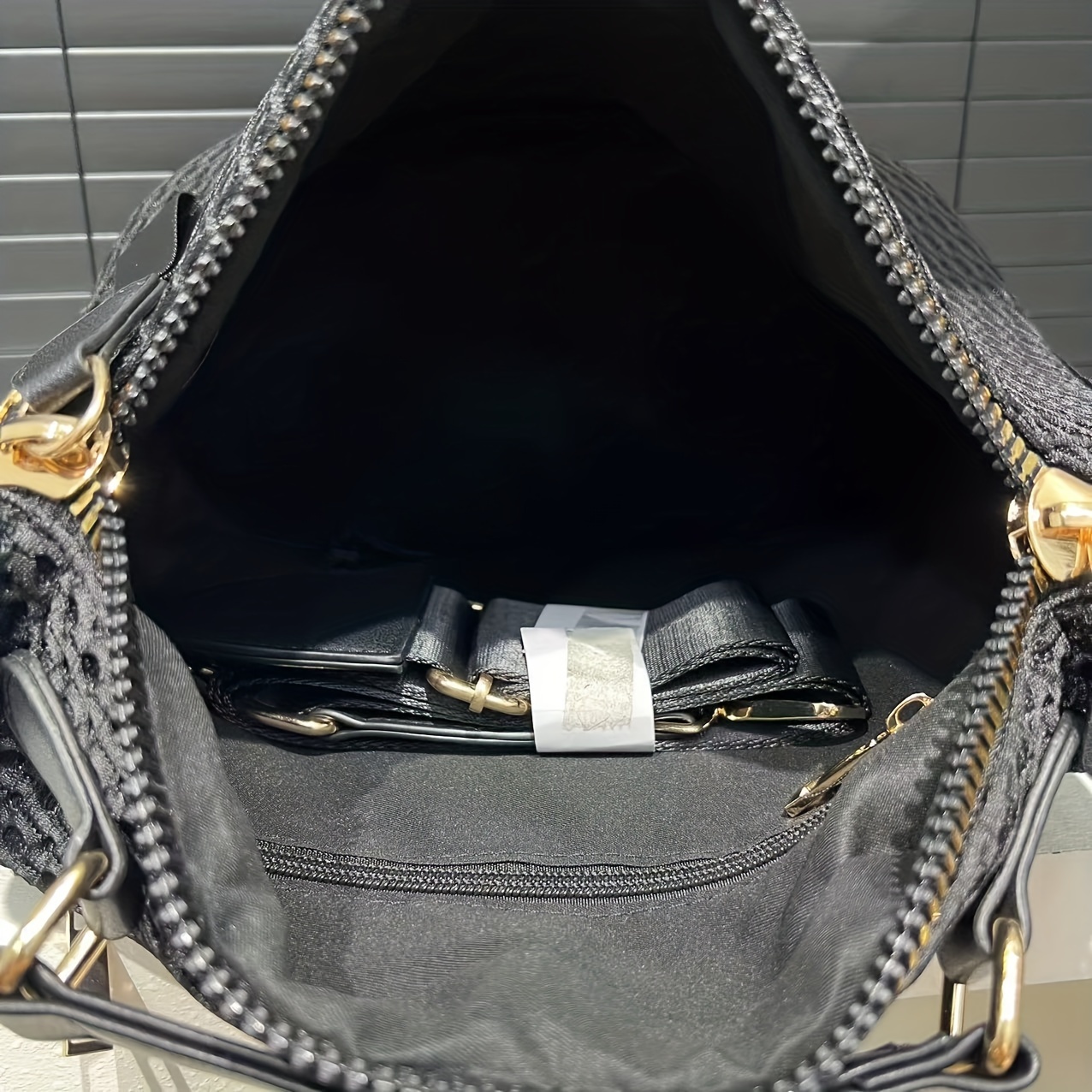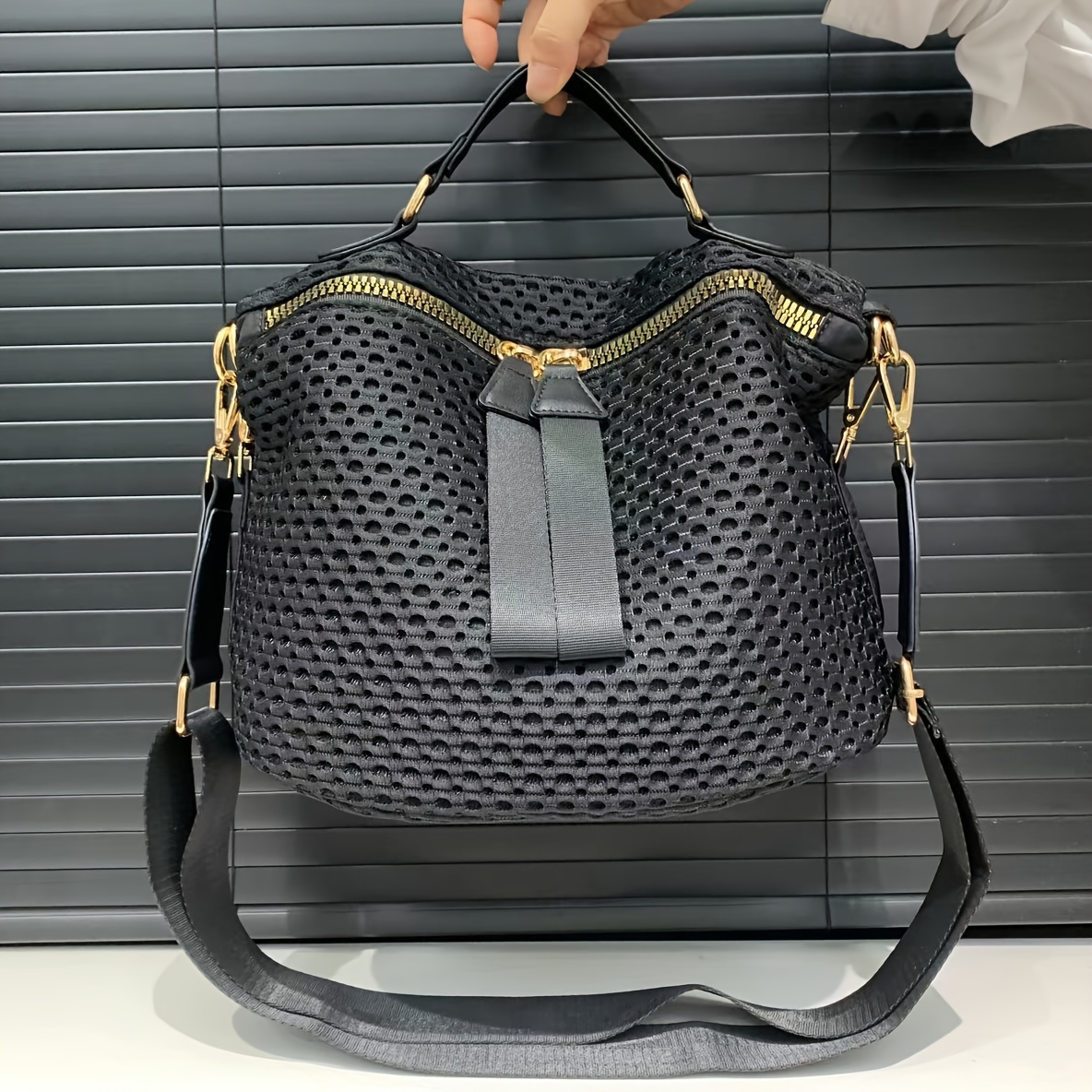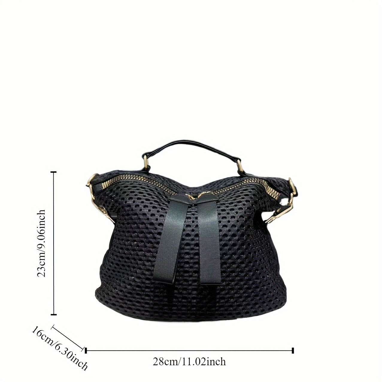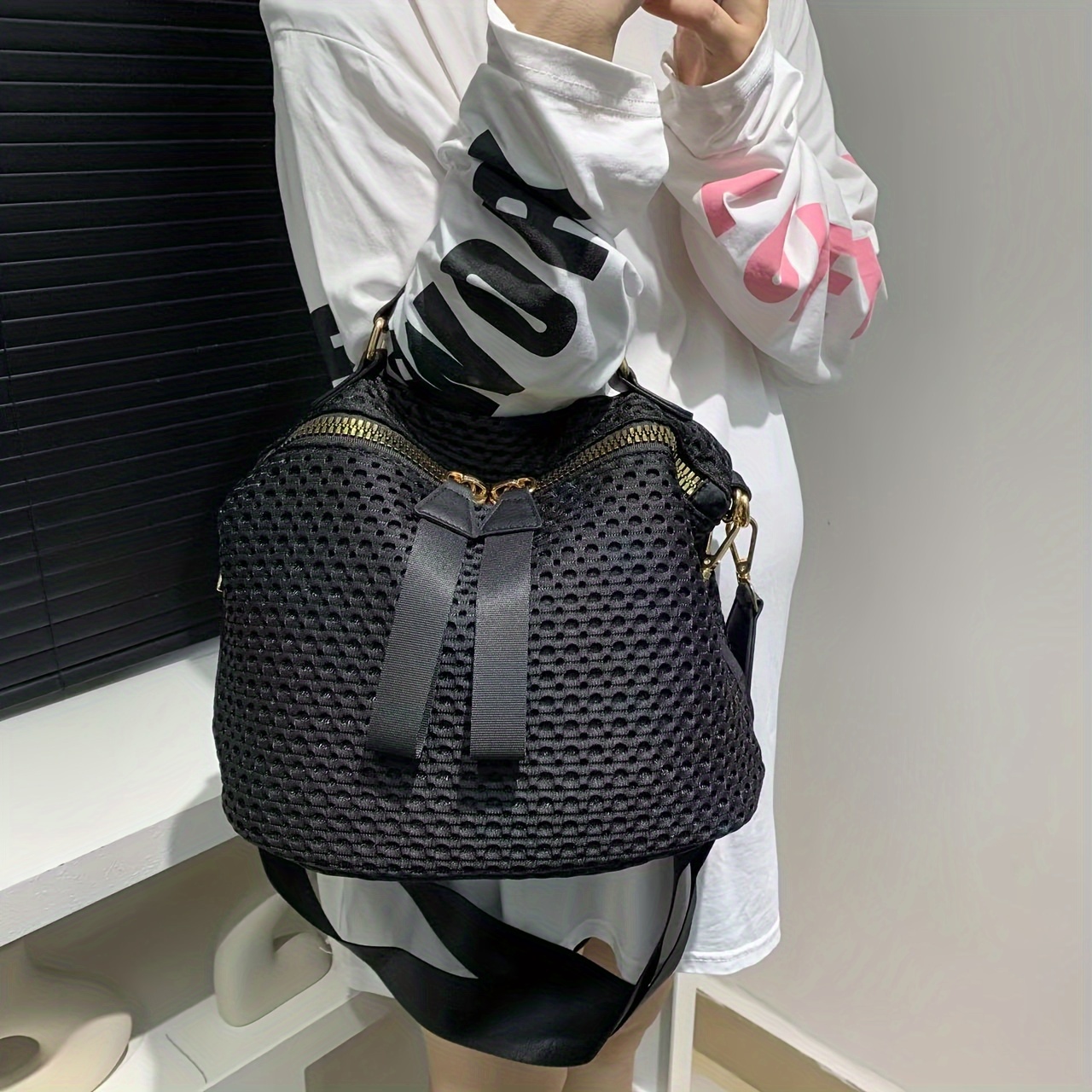 [Mesh Crossbody Bag] Lightweight Black Nylon Mesh Crossbody Bag - Chic Women's, Versatile with Wide Strap & Detachable Shoulder Strap, Zip Closure