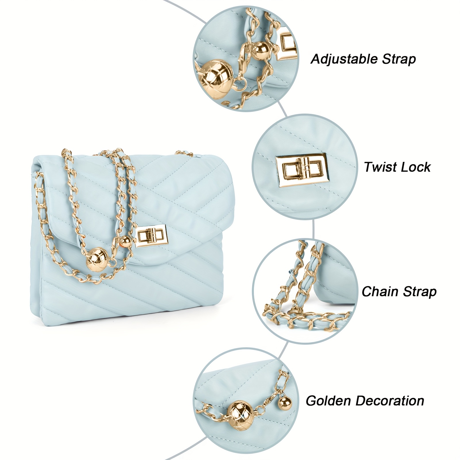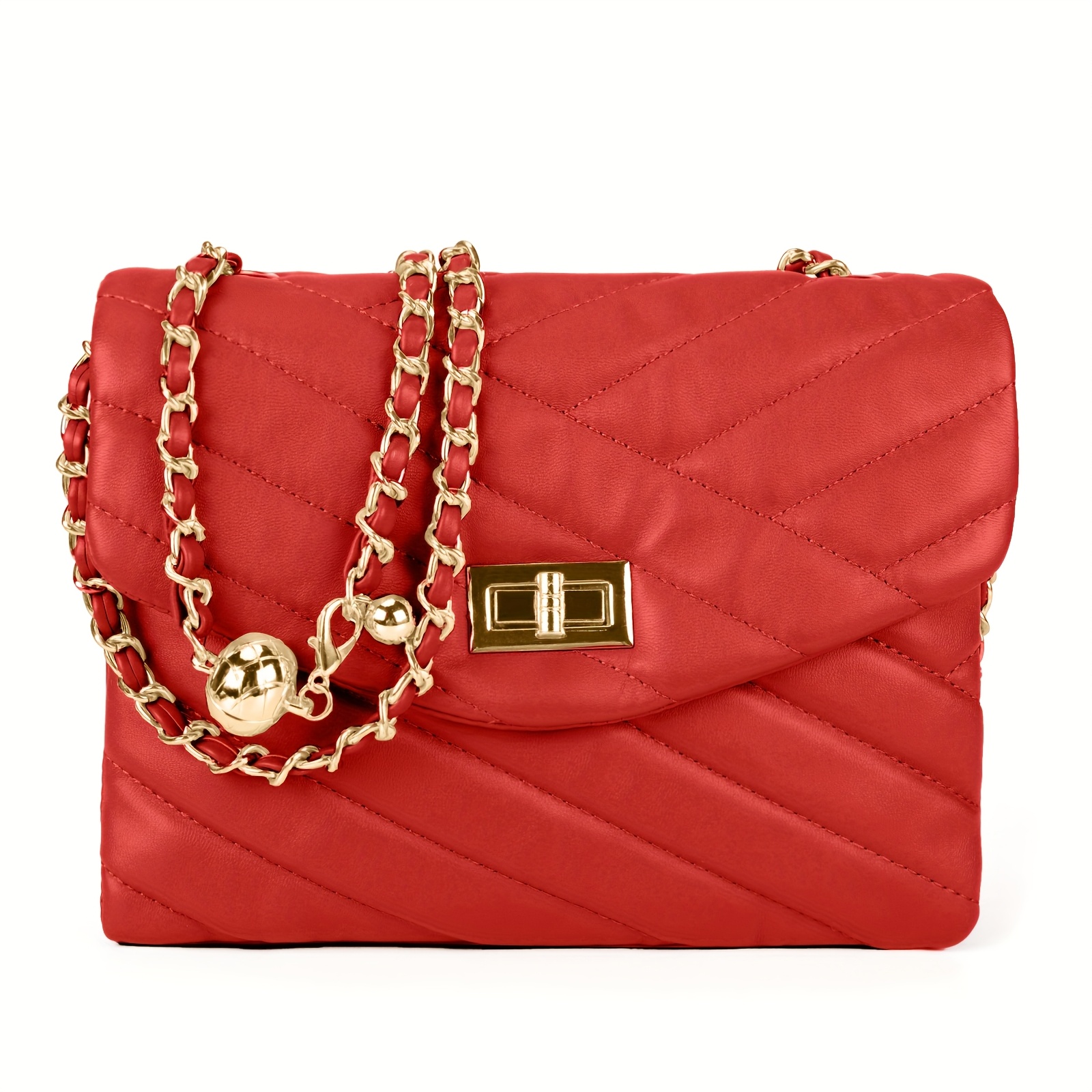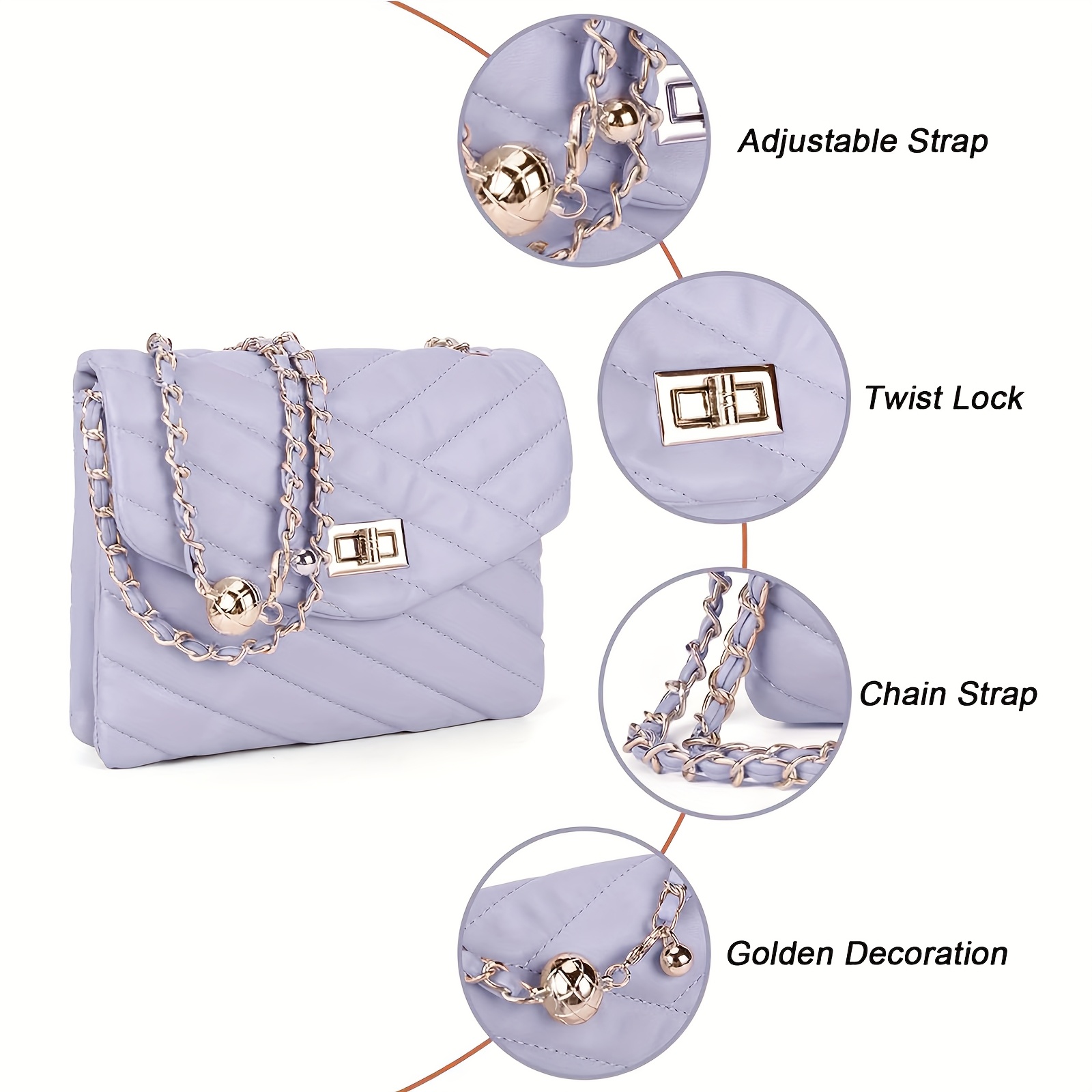 New Fashion Diamond Lattice Soft Chain Bag, Leisure And Simple With Pure Color PU Ladies Daily Travel Crossbody Bag