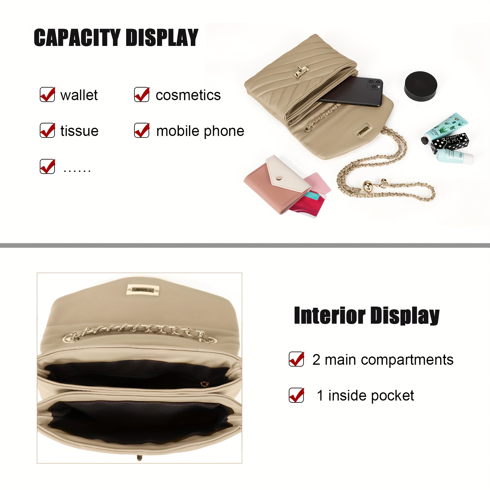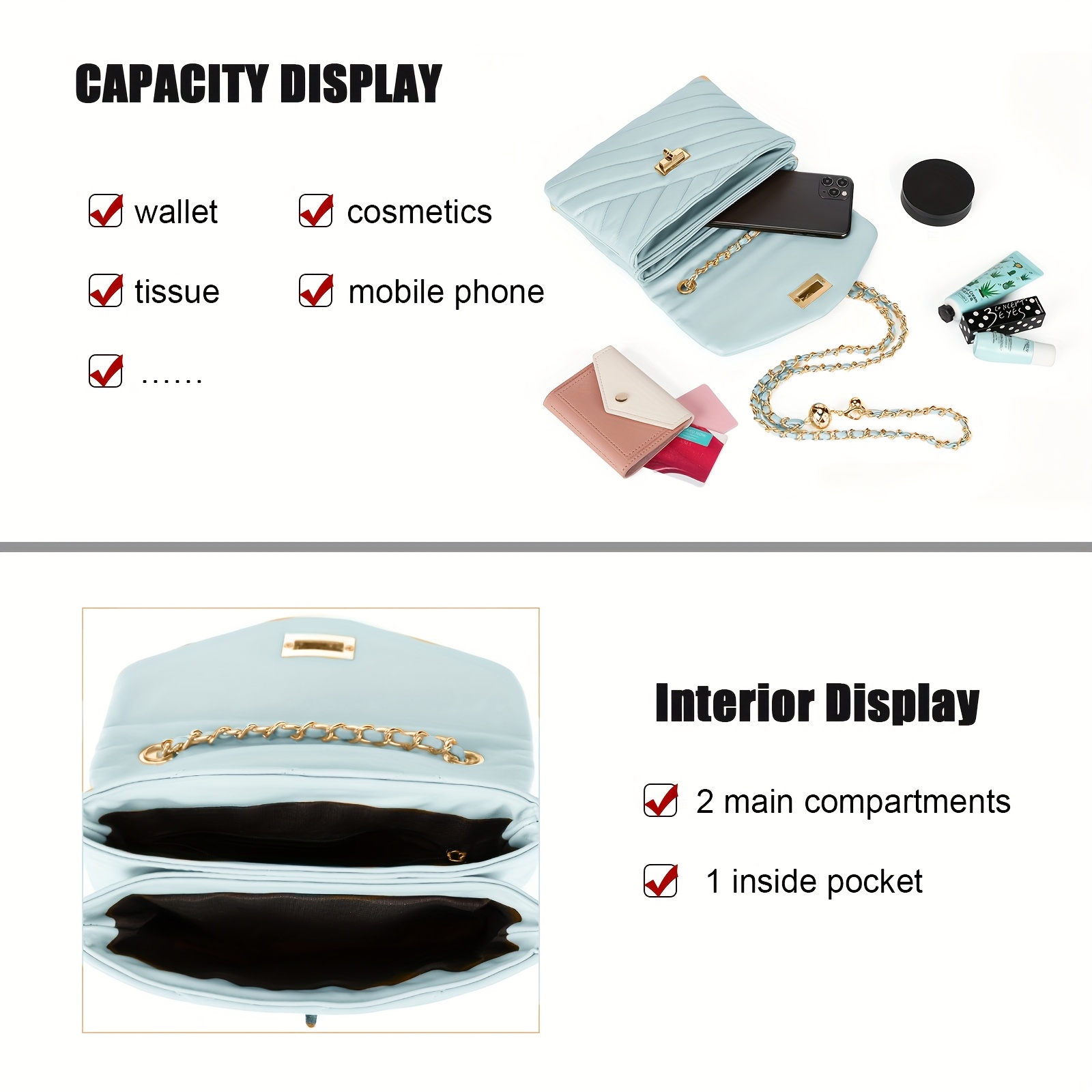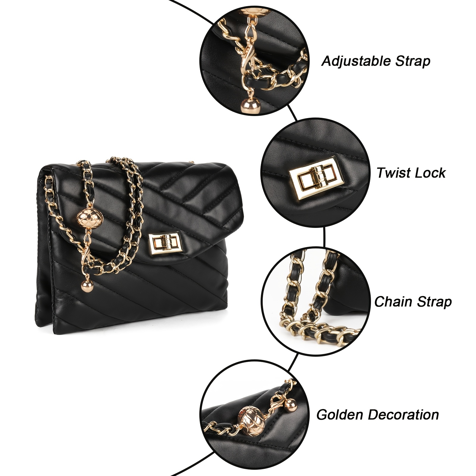 New Fashion Diamond Lattice Soft Chain Bag, Leisure And Simple With Pure Color PU Ladies Daily Travel Crossbody Bag