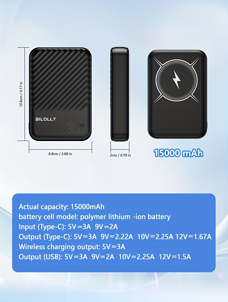 New Magnetic Wireless Power Bank - Portable Charger Power Bank, 5000/10000/15000mAh Battery Pack, 22.5/30W PD Fast Charging, 15W Wireless Charging, Magnetic Battery Pack For 17/16/15/14/13/12/Pro/Mini/Pro Max And Wired Chargi