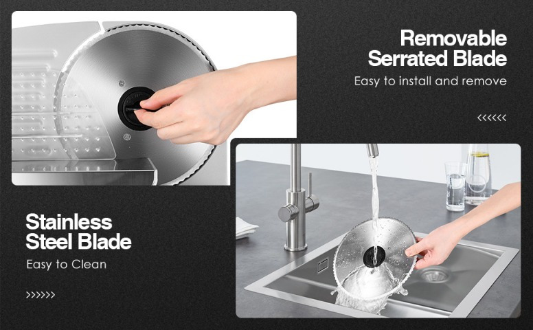 OSTBA Electric Meat Slicer with Child Lock Protection, Removable 7.5" Stainless Steel Blade & Food Carriage, Adjustable Thickness for Meat, Cheese, Bread (150W/200W)