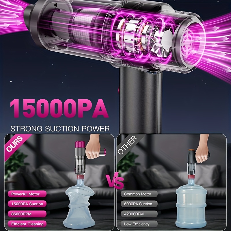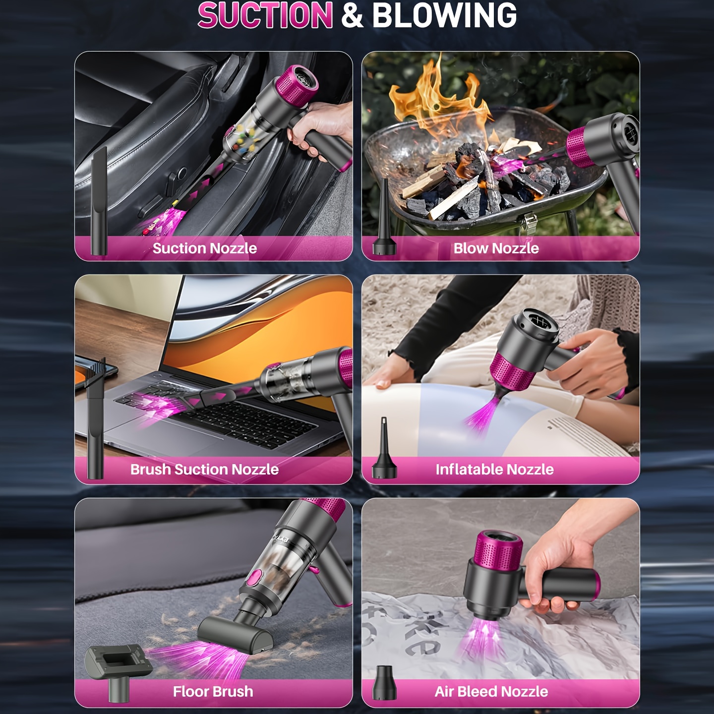 [Portable Vacuum] High-Power 4-in-1 Portable Wireless Vacuum Cleaner 15000PA Mini Vacuum, Compressor Air Blower And Pump Handheld Vacuum with Brushless Motor for Car, Home, Office, Camping, Computer Keyboard Laptop Dust Clean