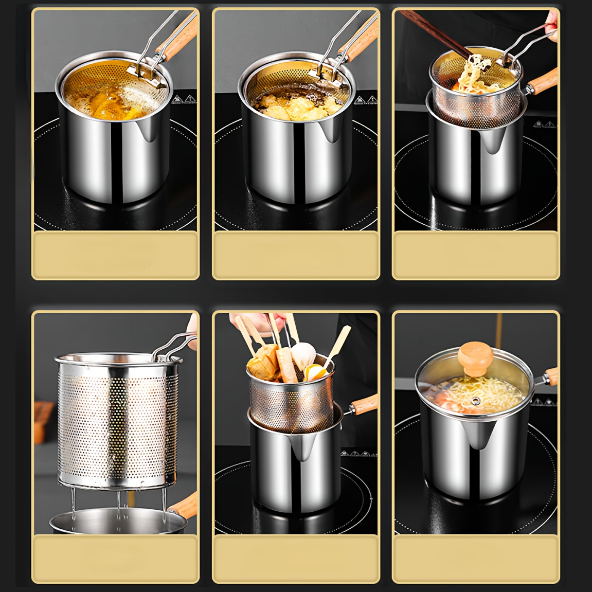 [Stainless Steel Fryer Set] 1set/3pcs - stainless steel - tempura fryer - with basket - deep fryer - multi-purpose cookware set