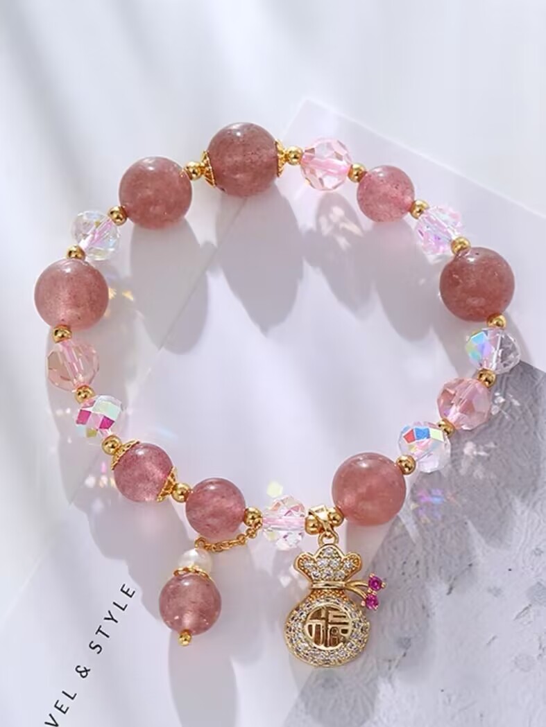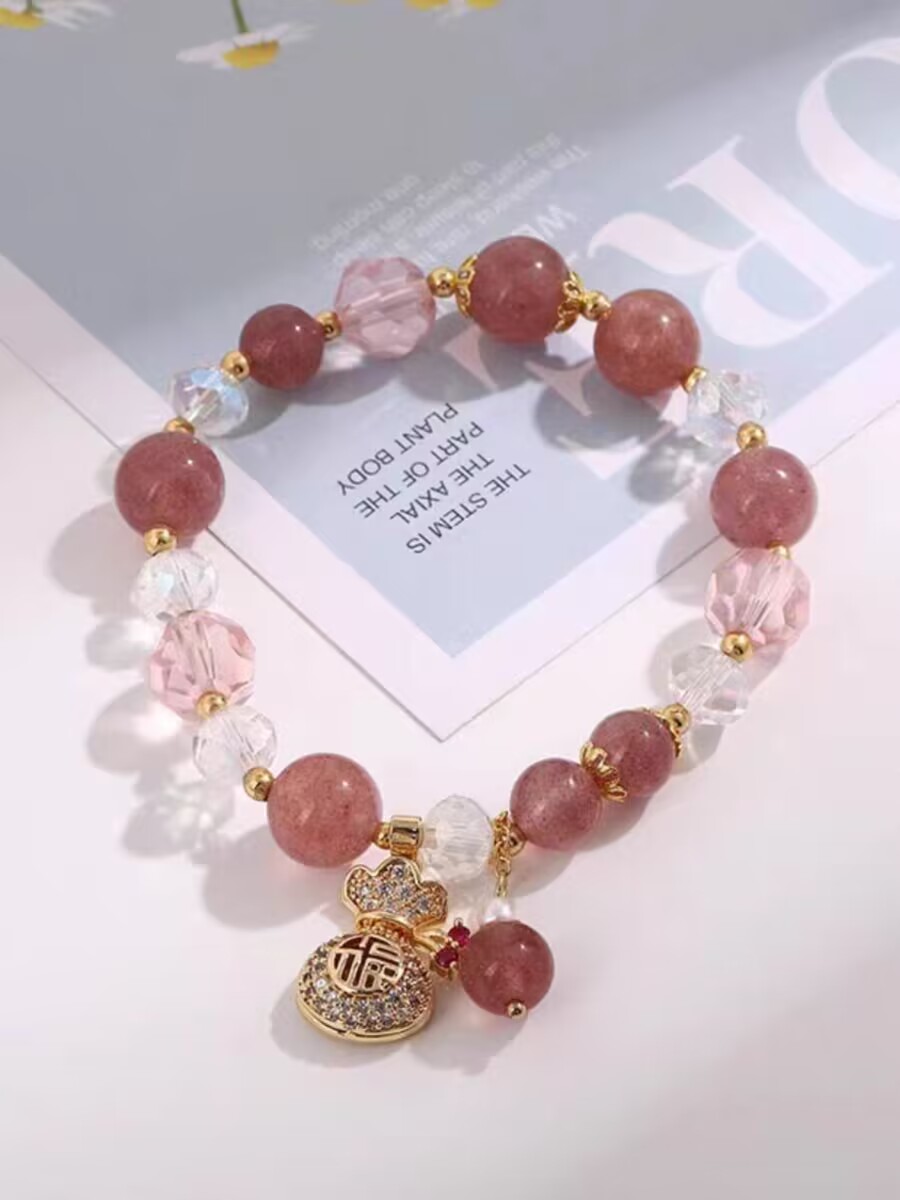 Strawberry Quartz Beaded Bracelet