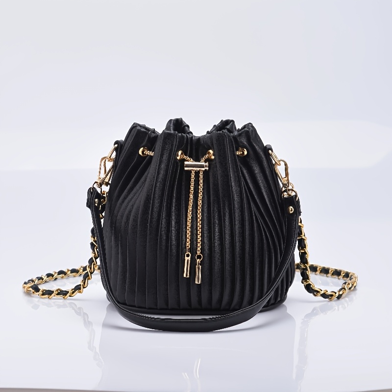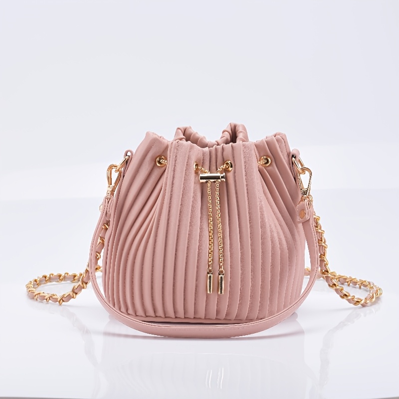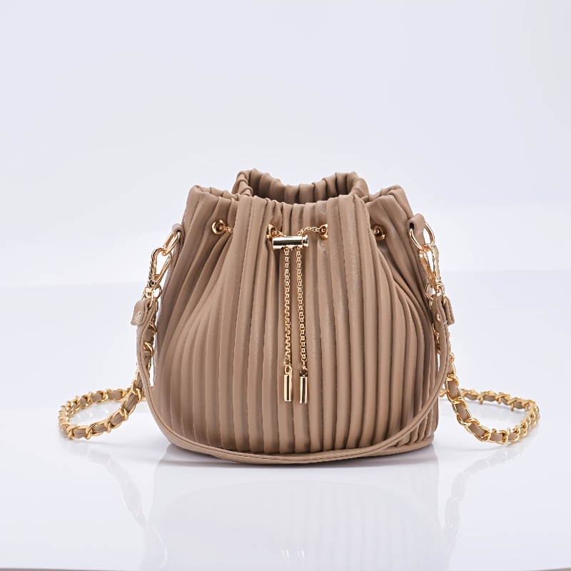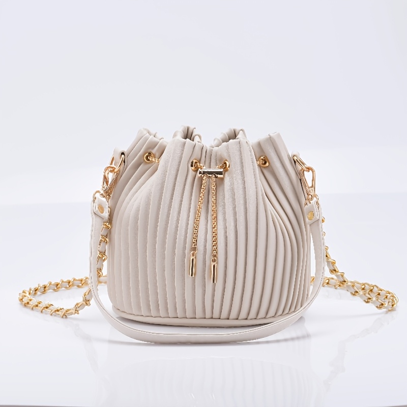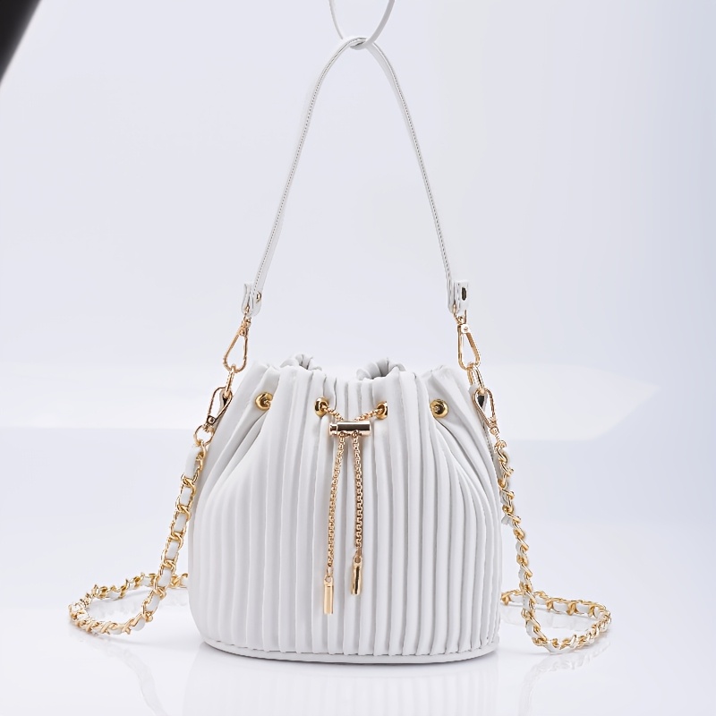 [Versatile Purse, Chic Design] Women's Shoulder Bag with Detachable Chain Strap - Elegant Synthetic Purse, Drawstring Closure, for Everyday, Formal, Party - Available in Beige, Gray, Pink, Green, White, Purple, Black - Women'