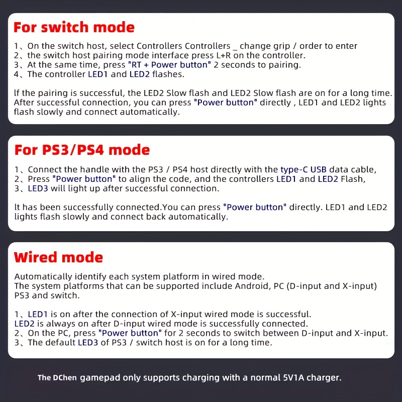 PACKAGE:1.GAME CONTROLLER2.USER MANUAL.3.CHARGING CABLE.