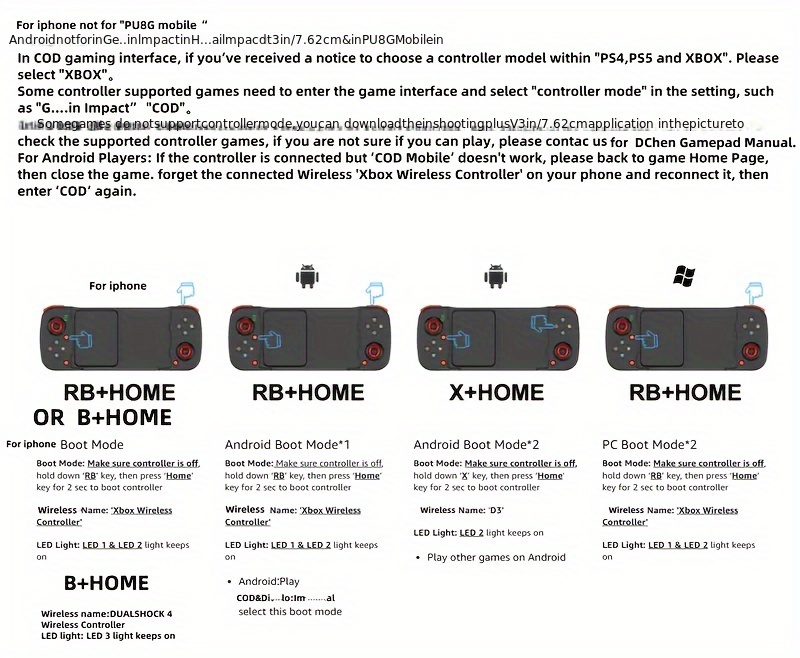 THIS IS A BASIC DCHEN GAME CONTROLLER.PLEASE READ THE ITEM DESCRIPTION ABOUT HOW TO CONNECT THE GAME CONTROLLER WITH YOUR PHONE BEFORE YOU PLACE A ORDER IN CASE YOU DON'T KNOW HOW TO USE IT AFTER YOU RECEIVE IT. "It's not just connect game controller with your phone only" THANKS ADVANCE!
