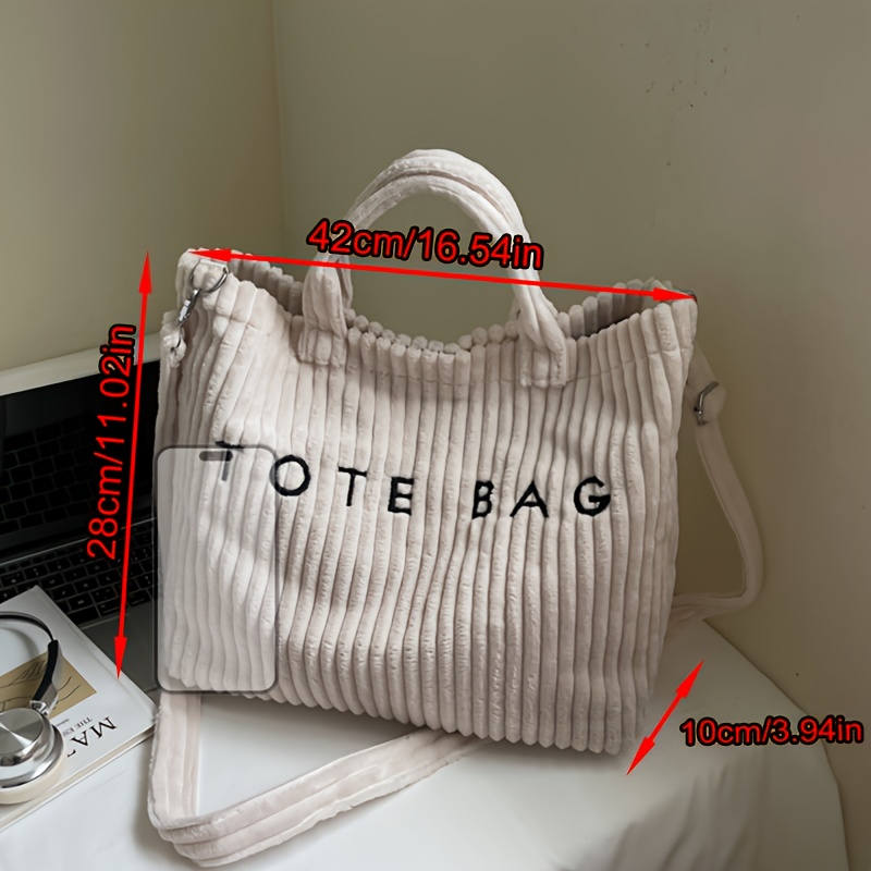 Women's Corduroy Tote Bag with Adjustable Strap & Closure - Soft Large Capacity Handbag for, Phone & Wallet - Corduroy Purse in,,,, | Gift-Ready for //Casual Use -
