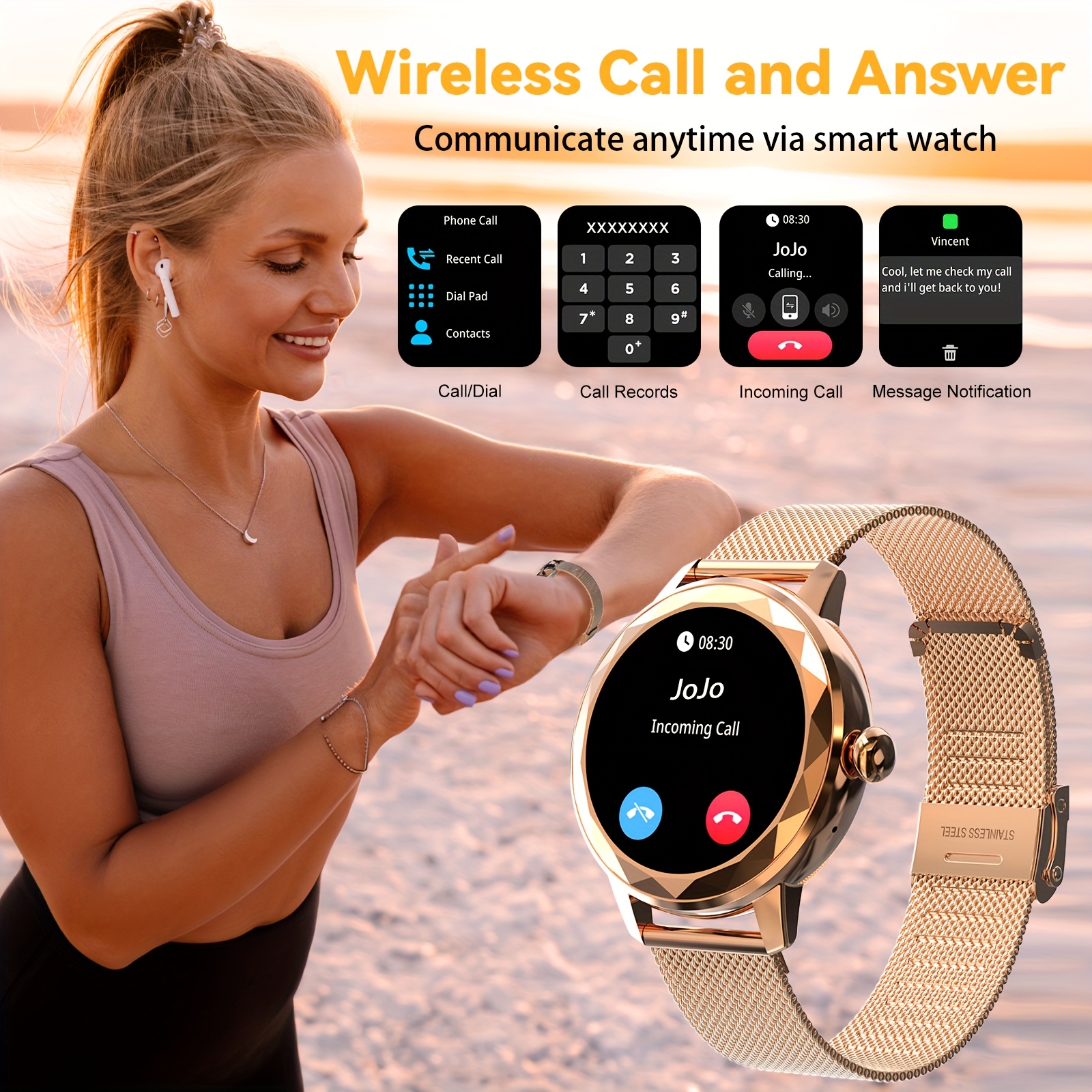 [Women's Smart Watch] Smart Watch for Women 2025 - High-Quality, Answer & Calls, Fitness Tracking, Sedentary Reminder, Weather Notifications, Calorie Tracker, Compatible with Android & iPhone, USB Charging, Sleek Design, Dura